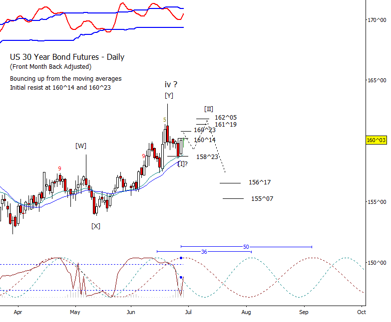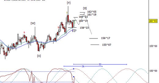 Slight drop today that was recovered and now back up against initial resist at 160^14. Good chance they push past that to tap 160^23 but would like the advance in [II] to be a little choppy and not a direct trip to 162^05.